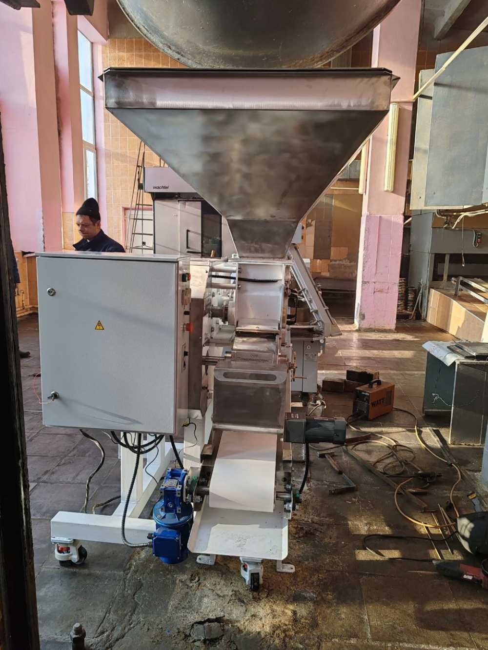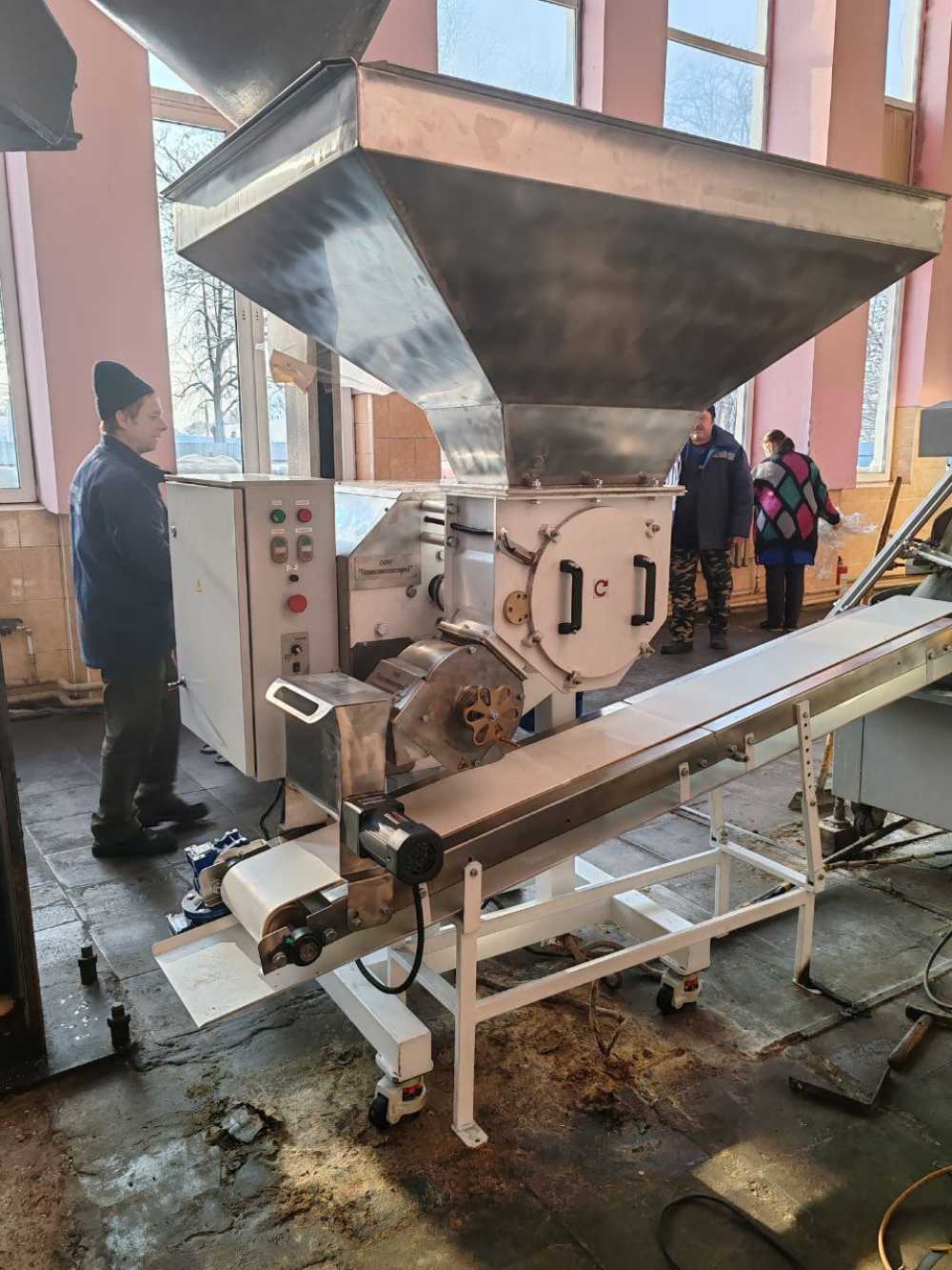 После этого куски теста попадают на приёмный конвейер либо в хлебопекареную форму.